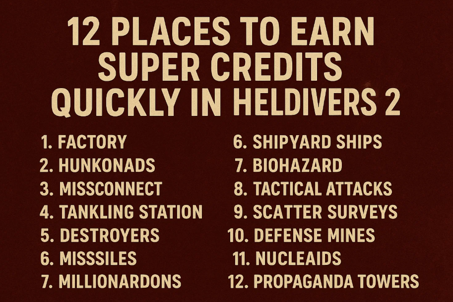 If you’re diving into the chaotic battlefields of Helldivers 2, chances are you’ve realized how valuable Super Credits can be. Whether you’re eyeing elite stratagems, rare armor sets, or exclusive upgrades, Super Credits are the currency that fuels your progress. This guide outlines 12 efficient locations and mission types where you can farm Super Credits quickly—without burning out or wasting time.